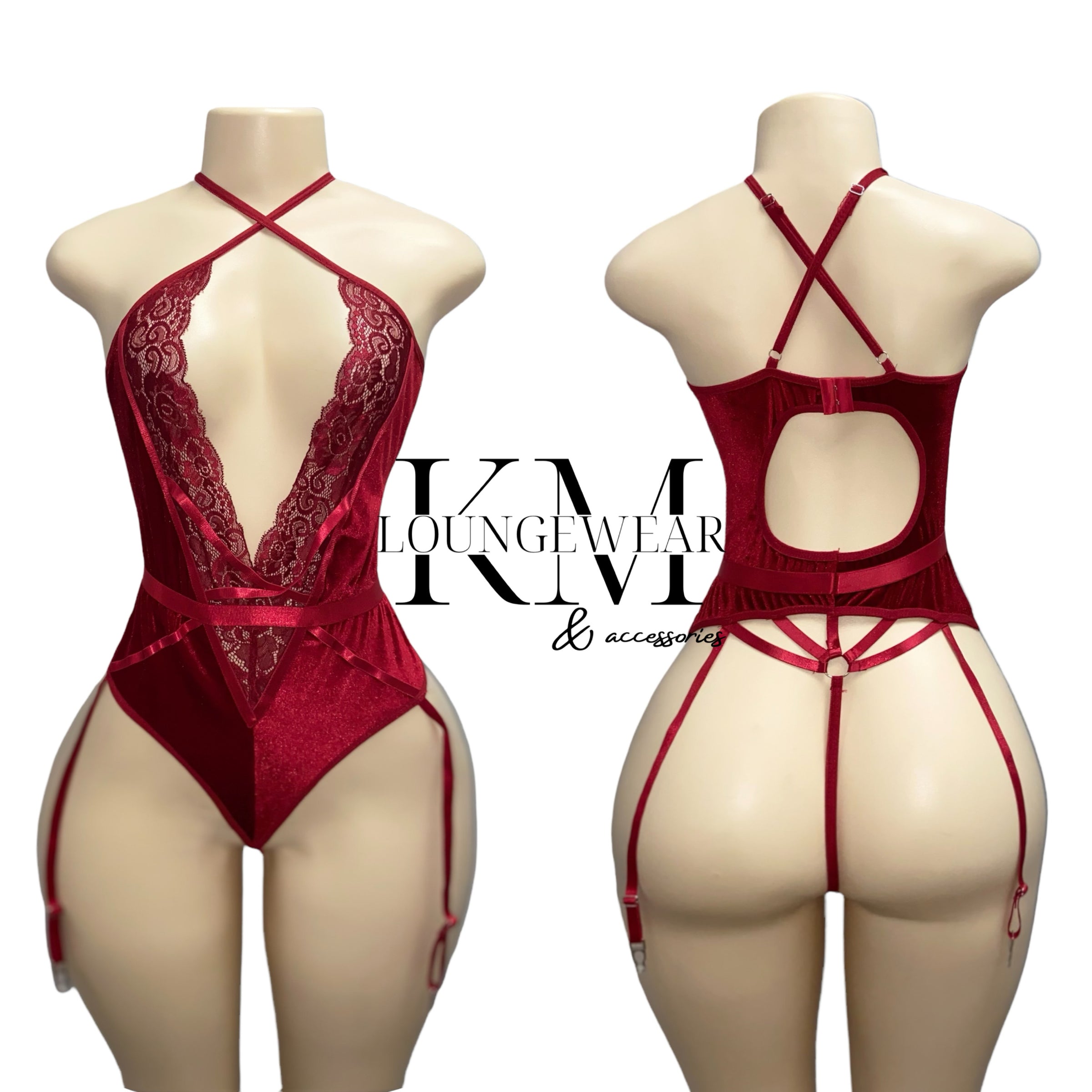 The Red Velvet one piece is a statement piece made for the bedroom. It features velvet material with a thong finish.